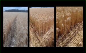 Veremos de cerca los rastros de la marca. Marcela, le pidio al productor que revisara las condiciones de la semilla, la varas. Se trata de una producción de trigo que en la próxima semana, estará siendo cosechada, por lo cual todo hayq ue hacerlos rápido.