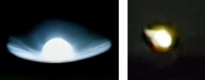 “La primer foto, era una luz en medio y alrededor tenia eso, se movían como en circular, atrás de una lomita, yo estaba en el asfalto se veía todo ya que a mí me pareció raro que fuera una luz porqué era bastante grande. Uno de mis amigos, le sacó una foto o grabó un video, que salió de mala calidad, solo se ve un puntito.