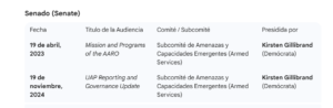 LAS COMISIONES Y AUDIENCIAS UAP EN LA CAMARA DE REPRESENTANTES Y DEL SENADO